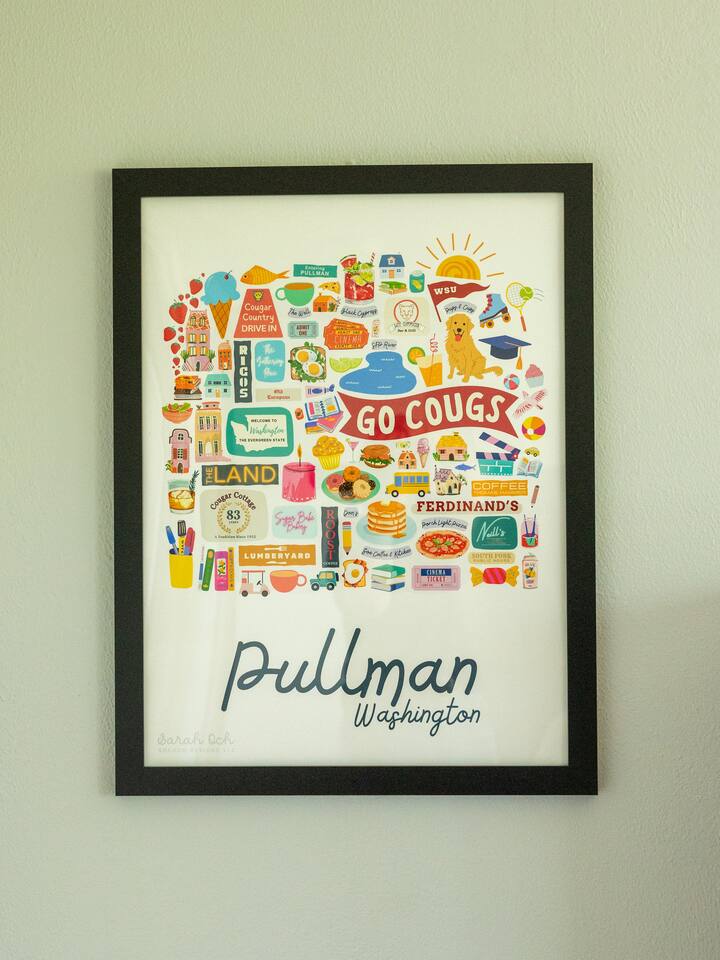 Step into this beautifully updated mid-century home, just steps from WSU’s campus. The Stadium View House offers stunning views through large picture windows throughout. With five bedrooms, two bathrooms, and a spacious outdoor deck, there’s plenty of room to unwind. • 🚗 2 off-street parking spaces + 2 permitted street spots • 📶 High-speed WiFi • 🧴 Public Goods shampoo, conditioner & body wash • 🛏️ Fresh towels & linens • 🌡️ Central heat & A/C • ☕ Keurig coffee & tea station • 📺 Smart TV